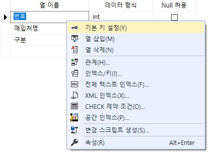 번호열은 기본키로 설정해 주세요.